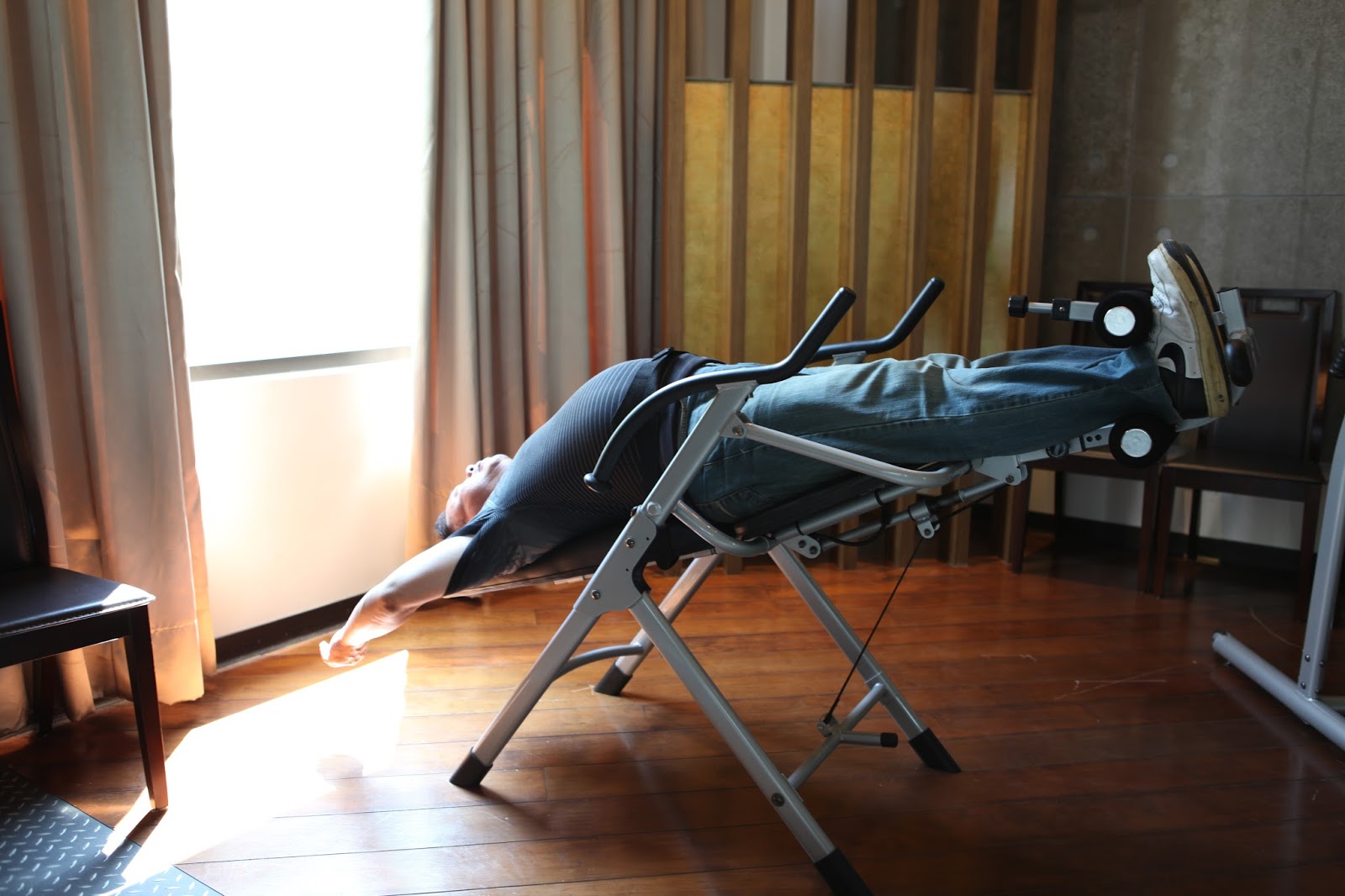 好在社區的健身房有台倒立機器