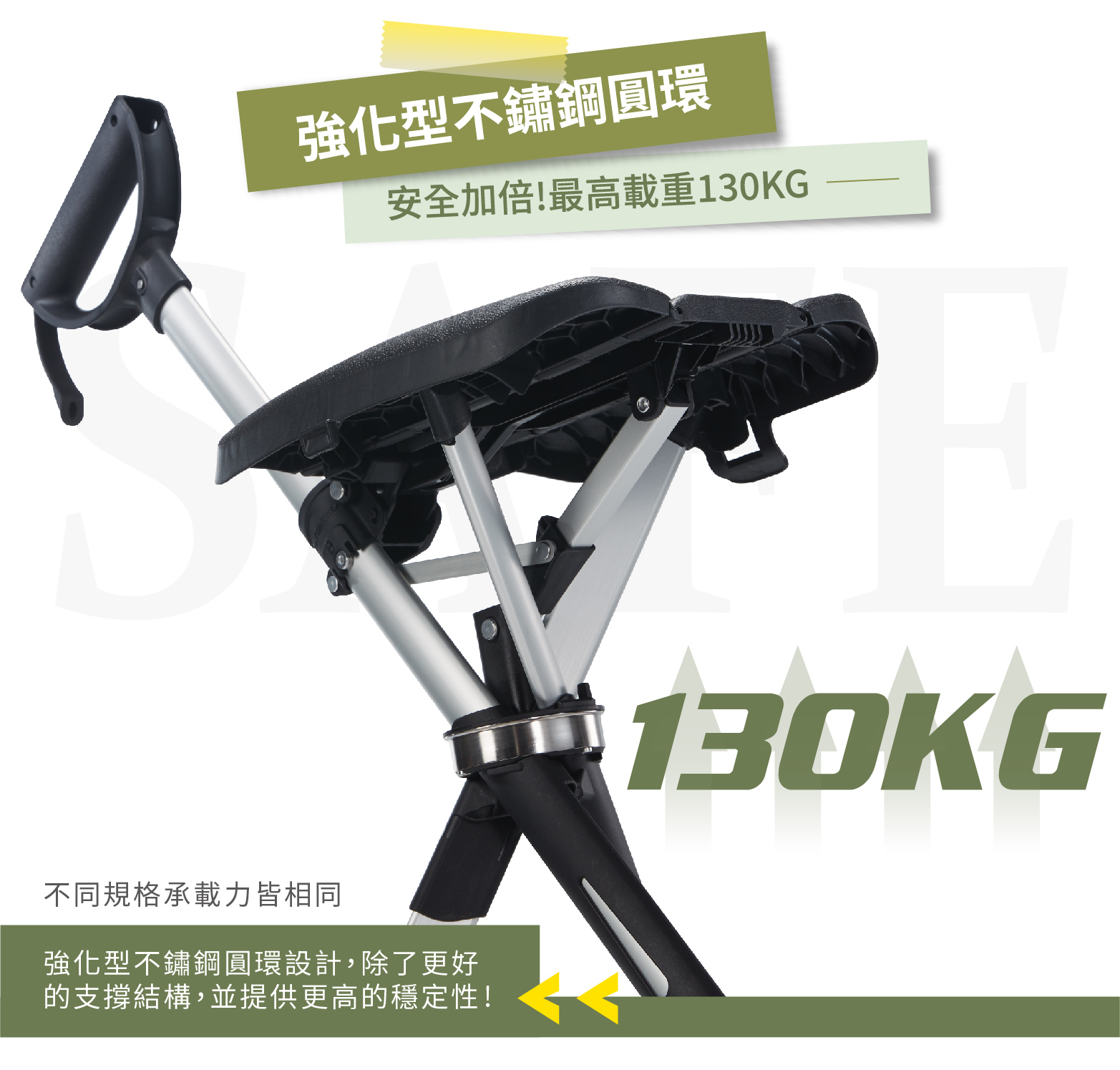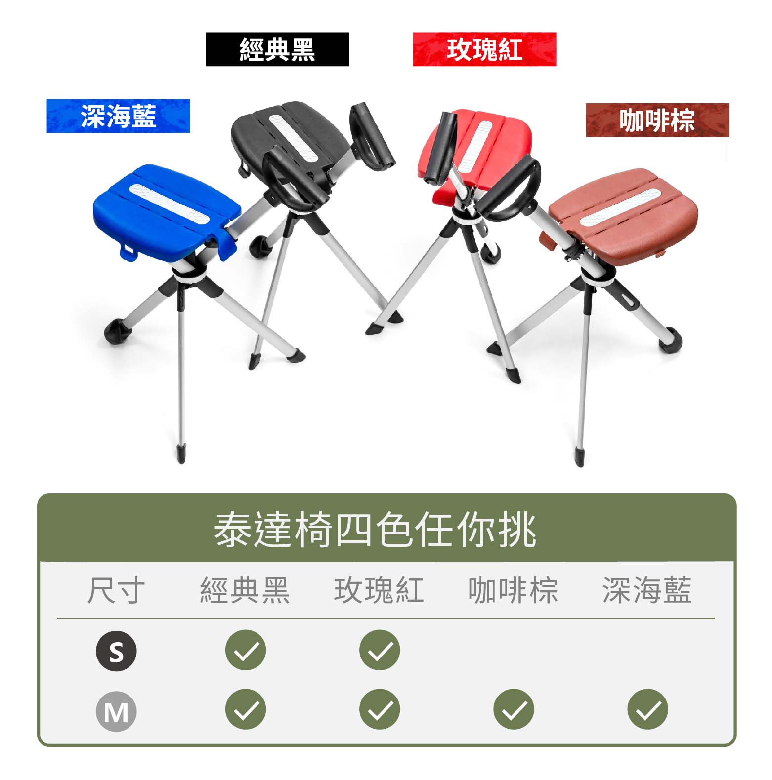 「泰達隨身椅」使用專利設計,將開合把手下壓,折疊座墊和椅腳就能快速展開;安全固定釦和椅面釦,讓開合後更堅固穩定;強化型不鏽鋼環不僅加強乘載力更讓泰達椅多了一道安全機制,坐起來更安心;加大面積的高止滑特殊腳墊底部採螺旋設計,除了平面與斜面止滑,也兼具排水功能,在清洗後及時排水,讓產品更易於乾燥,延長使用壽命。