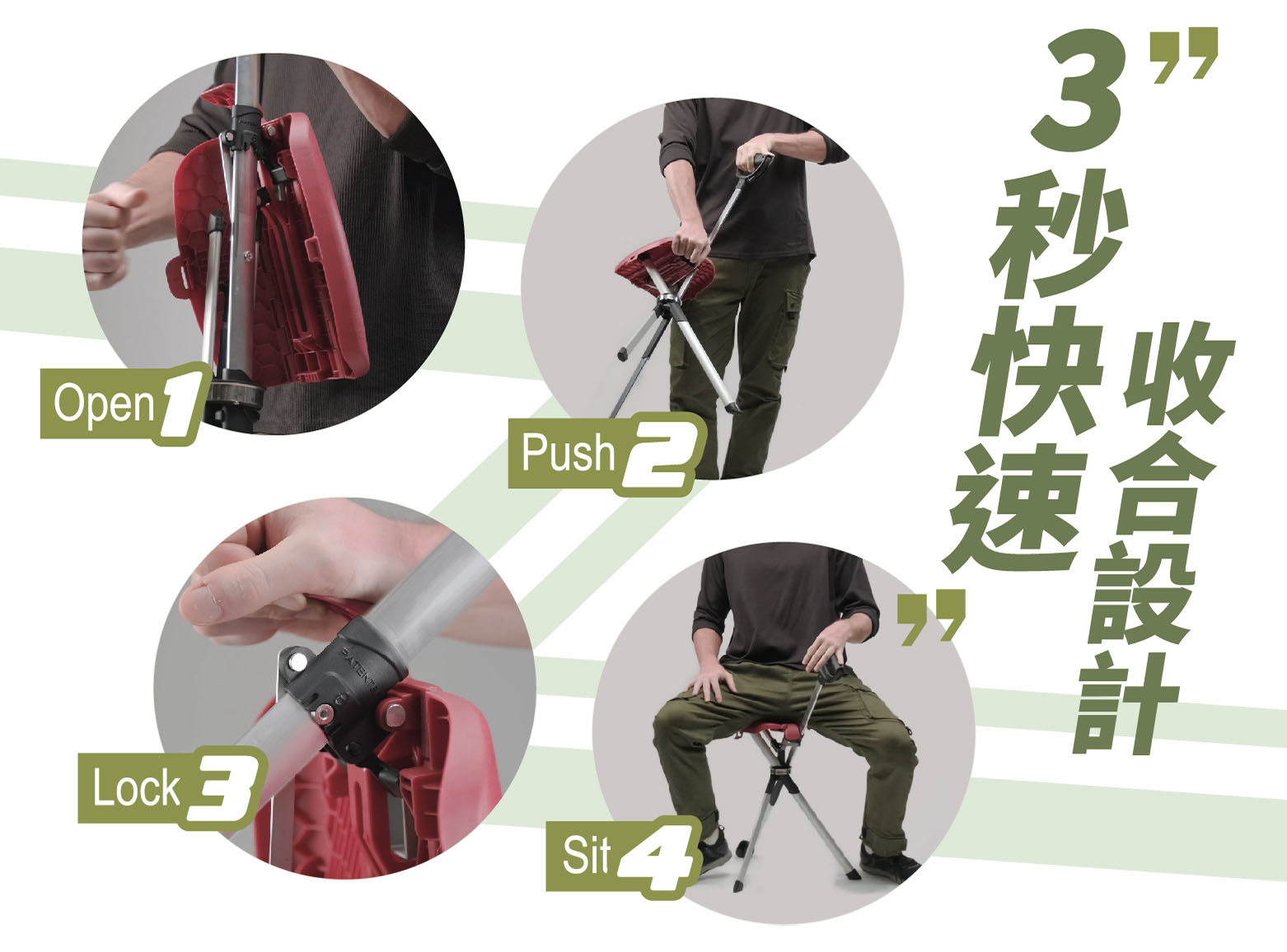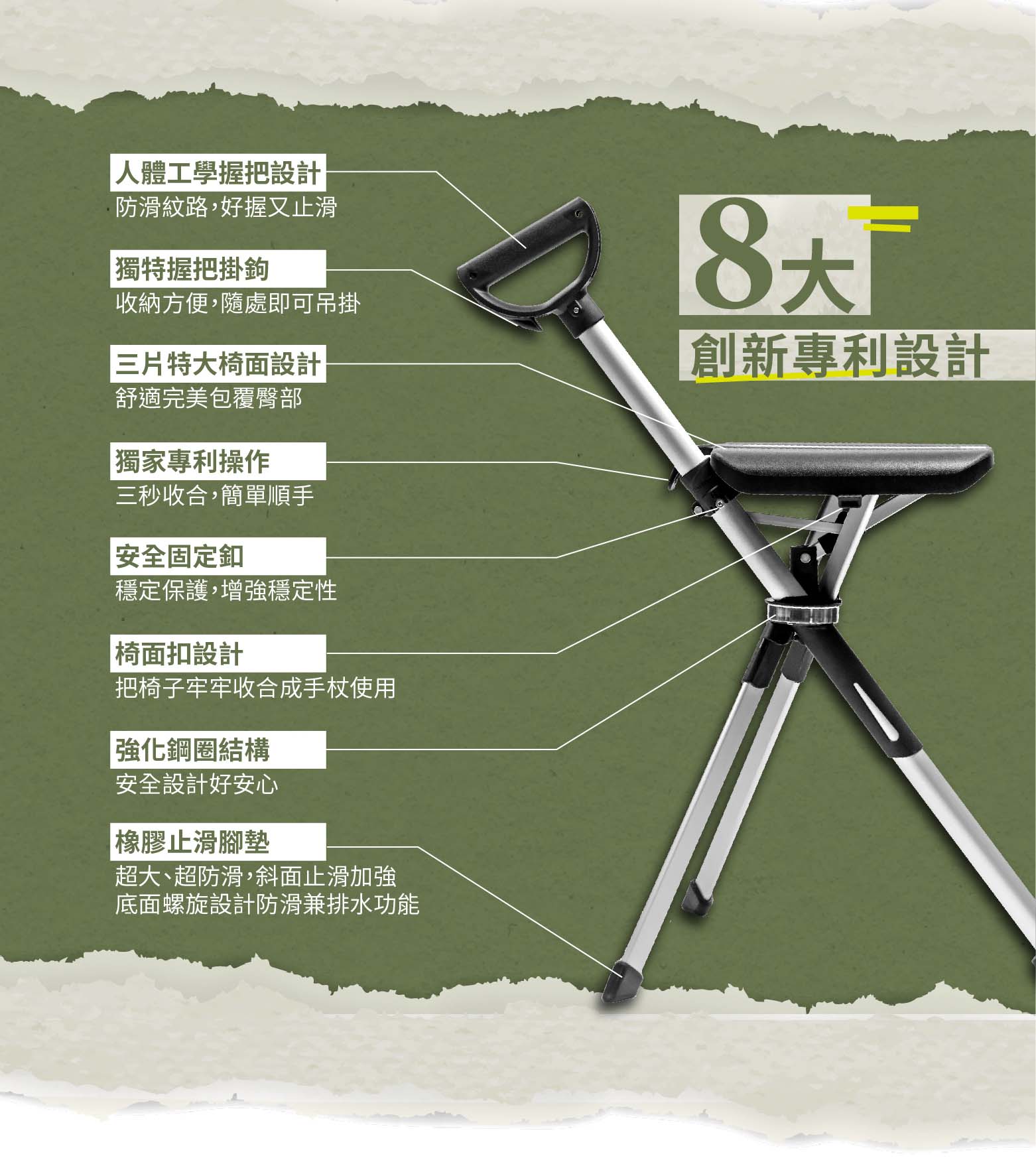 「泰達隨身椅」,既是拐杖、也兼具座椅功能,3秒內輕鬆打開椅子